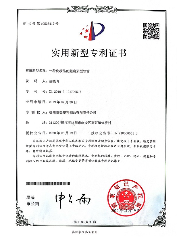 一種化妝品的超扁牙型軟管