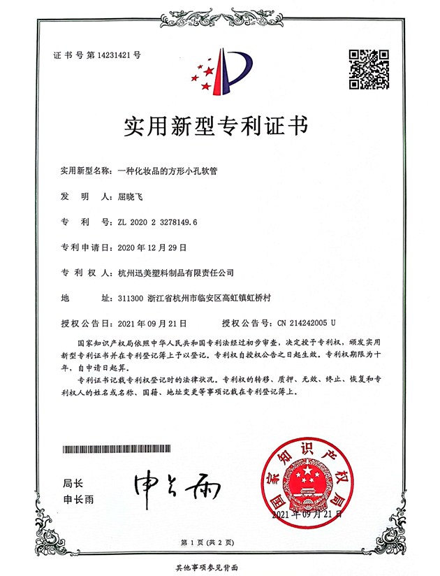 一種化妝品的方形小孔軟管