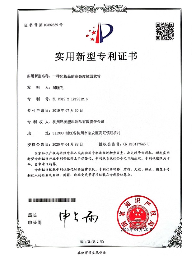 一種化妝品的高亮度鏡面軟管
