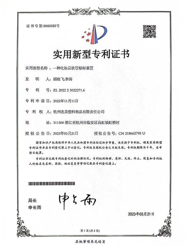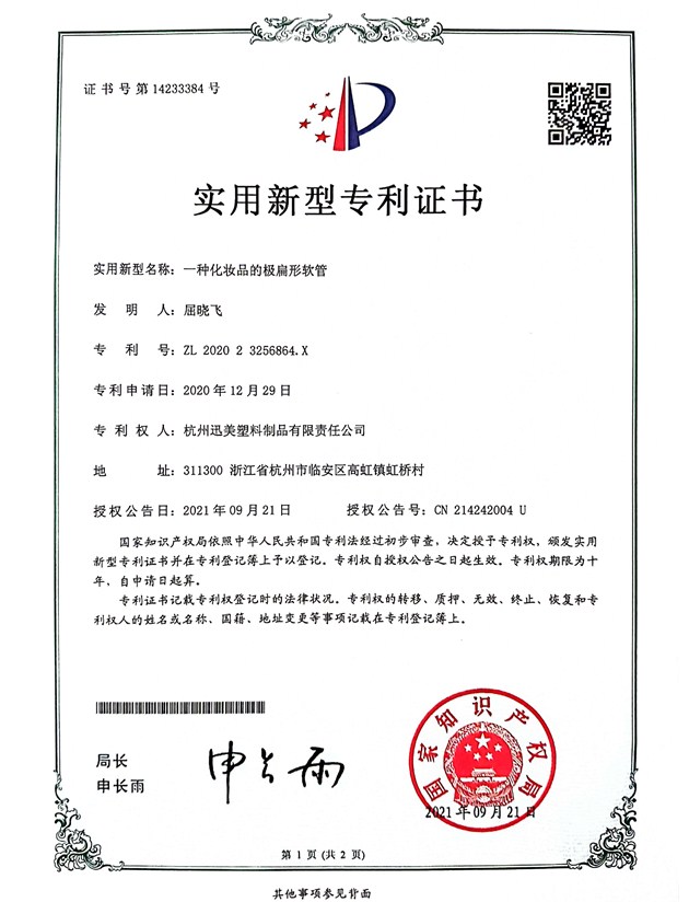 一種化妝品的極扁形軟管