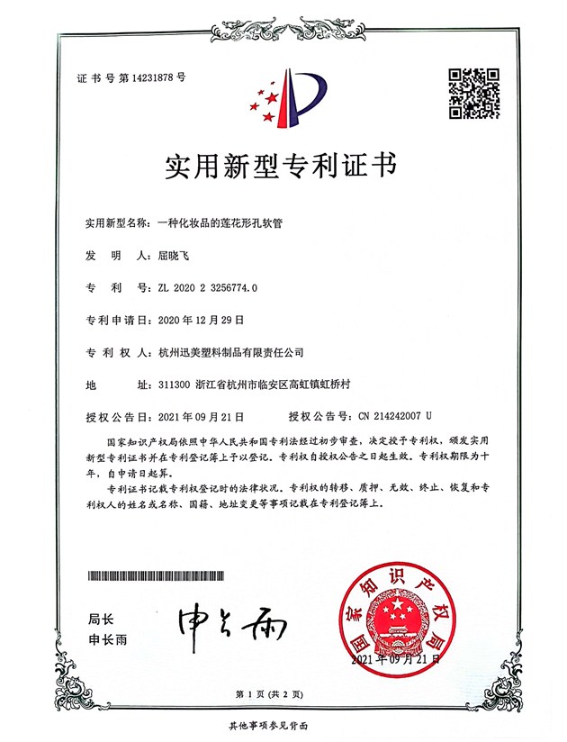 一種化妝品的蓮花形孔軟管