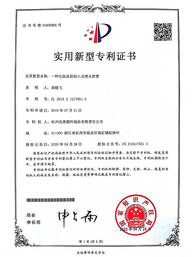 一種化妝品的拍入式噴頭軟管