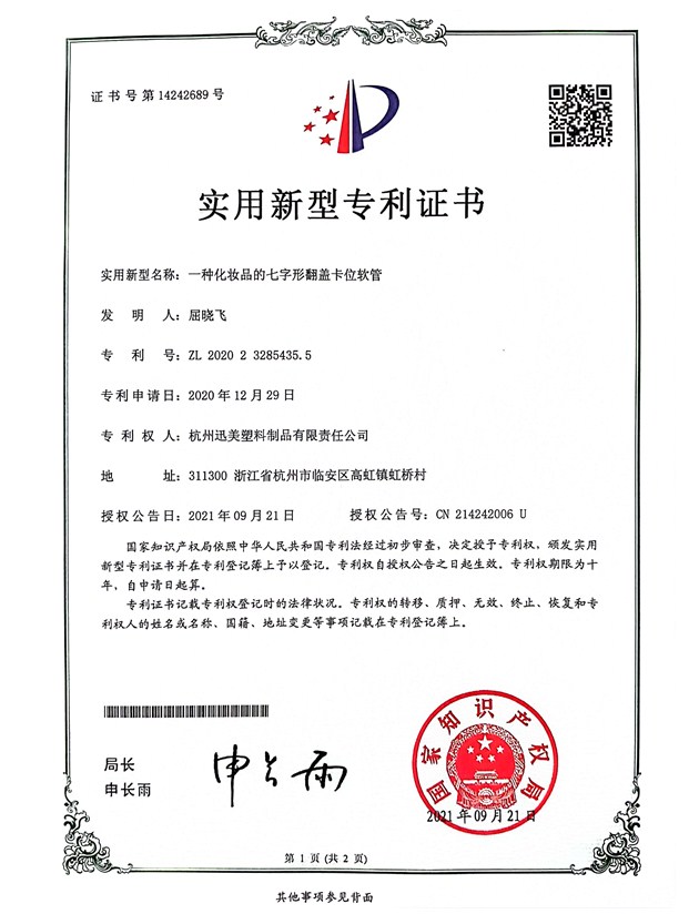 一種化妝品的七字形翻蓋卡位軟管