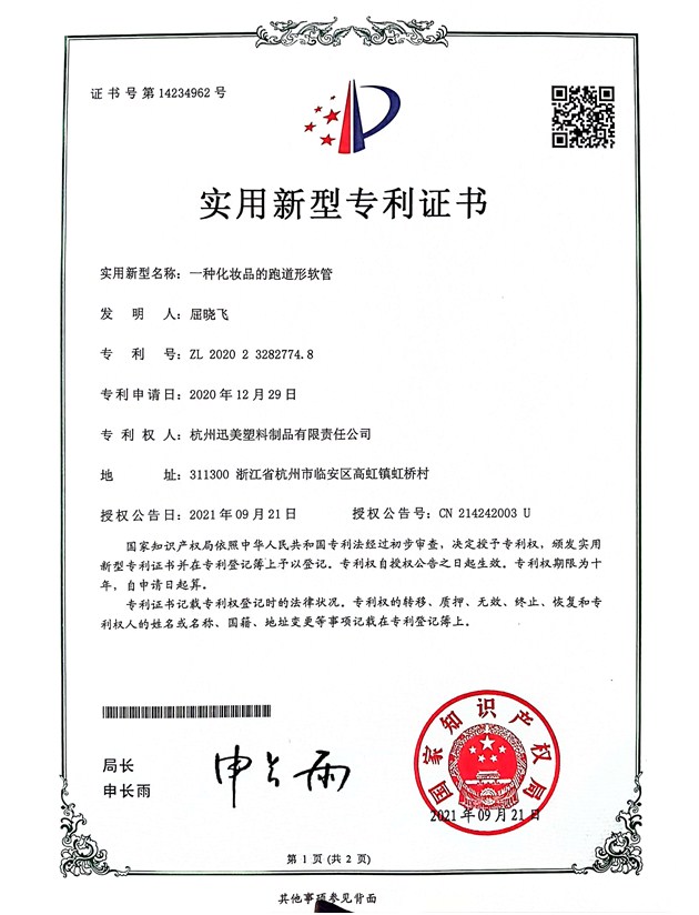 一種化妝品的跑道形軟管