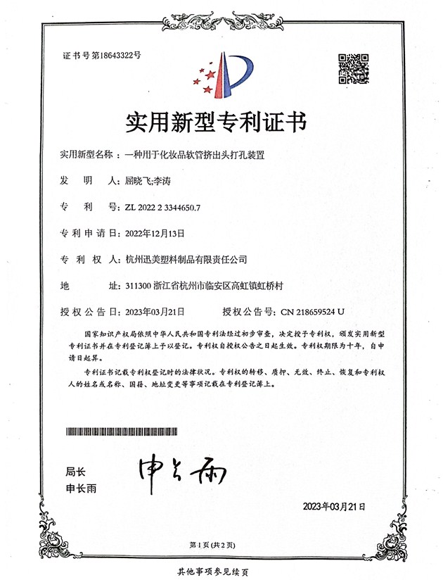 一種用于化妝品軟管擠出頭打孔裝置
